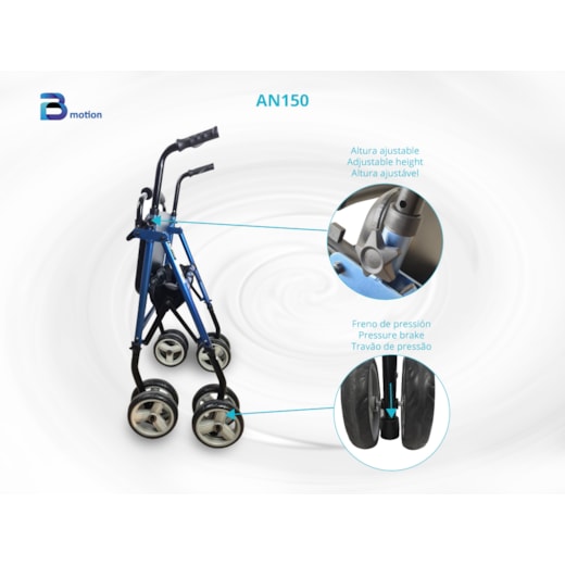 O Andarilho de 4 Rodas Duplas com Travão de Pressão foi projetado para oferecer o máximo de estabilidade, conforto e praticidade a quem necessita de apoio adicional na caminhada. Ideal para idosos, pessoas em recuperação ou com dificuldades de equilíbrio, este andarilho garante segurança e liberdade nos deslocamentos, seja em casa ou ao ar livre.