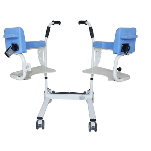 A Cadeira de Banho / Transferência é ideal para transportar pessoas com mobilidade reduzida de forma segura e confortável até ao duche, sanita ou outros espaços interiores. Desenvolvida para facilitar o trabalho do cuidador, permite a recolha do paciente diretamente da cama, graças ao seu assento aberto que desliza suavemente por baixo do utilizador.