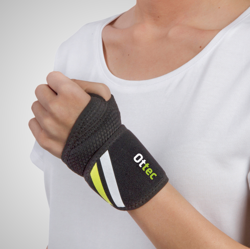 Órtese envolvente para o pulso com fixação do polegar, projetada para suporte, estabilização e prevenção de lesões.