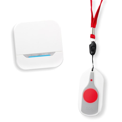 - Fácil de usar: O medalhão leve e confortável pode ser usado no pescoço ou no pulso, permitindo que o utilizador tenha sempre o botão de chamada ao alcance.